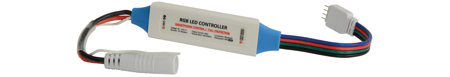 Bluetooth controller to operate RGB LED tape from a smartphone using the ColorEasy3 Plus™ app for android or iOS. Choose from 16 million static colours or 42 dynamic programs, which can be stored i...