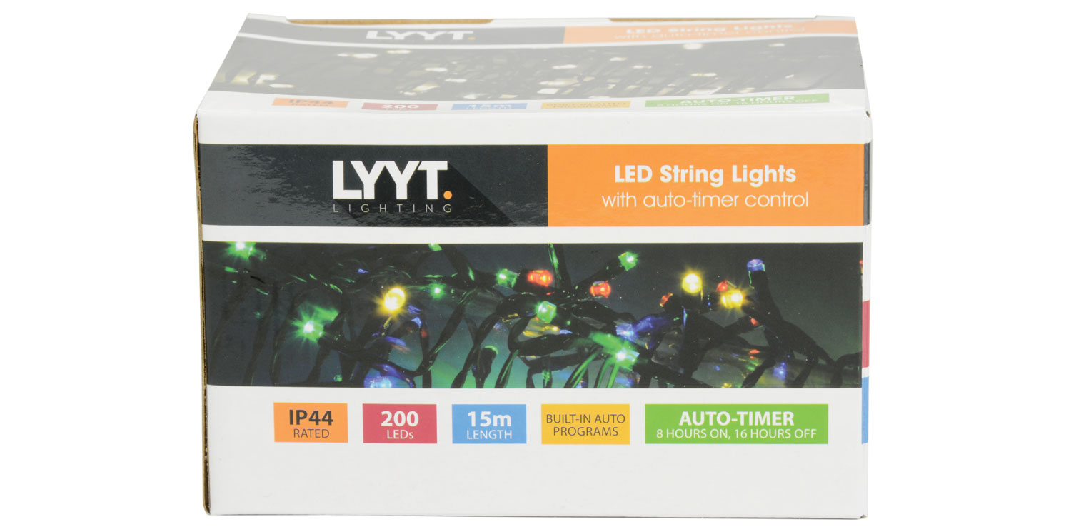A range of LED string lights with 8 pre-programmed sequences allowing you to adjust the mode to your preference via the included controller. Switching the lights on triggers an operating cycle with 8 hours on and 16 hours off allowing the lights to automatically come on at the same time everyday. The high quality LEDs have a long lifespan and are energy efficient making them ideal for indoor and sheltered area decorations.