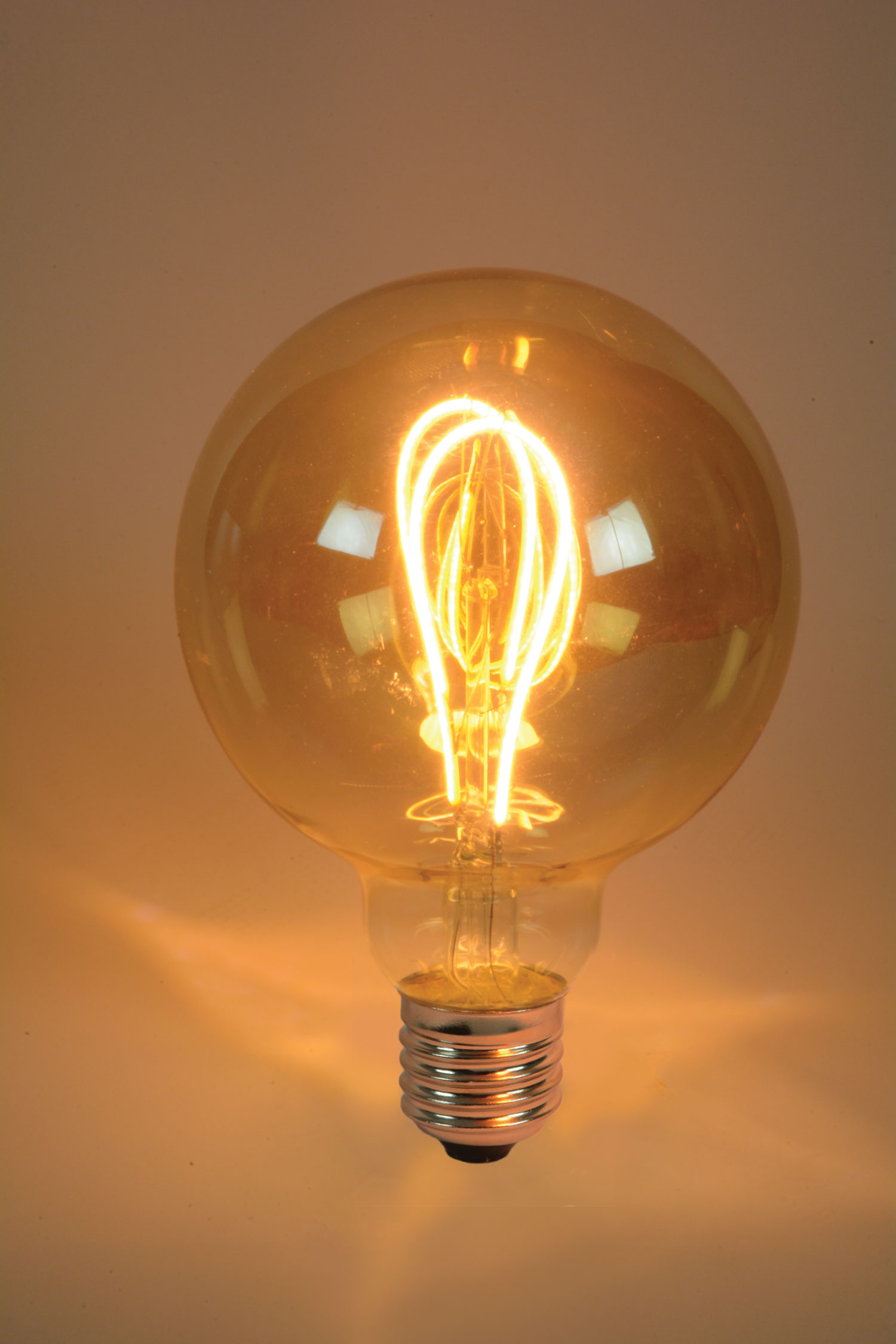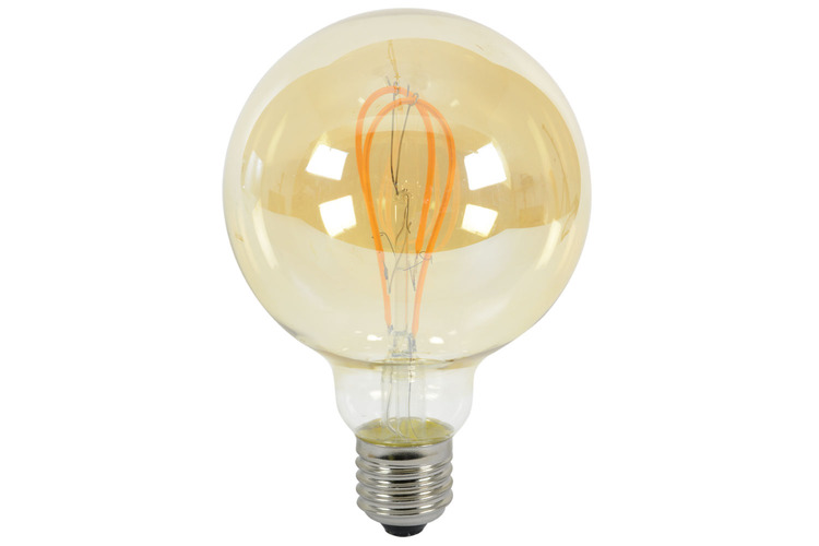 LED replacement G95 decor lamp with twin loop filament. The warm white colour temperature combined with amber coated glass envelope invokes a retro ambiance. Energy efficient drivers deliver stable power and provide useful illumination for decorative yet functional lighting schemes.
