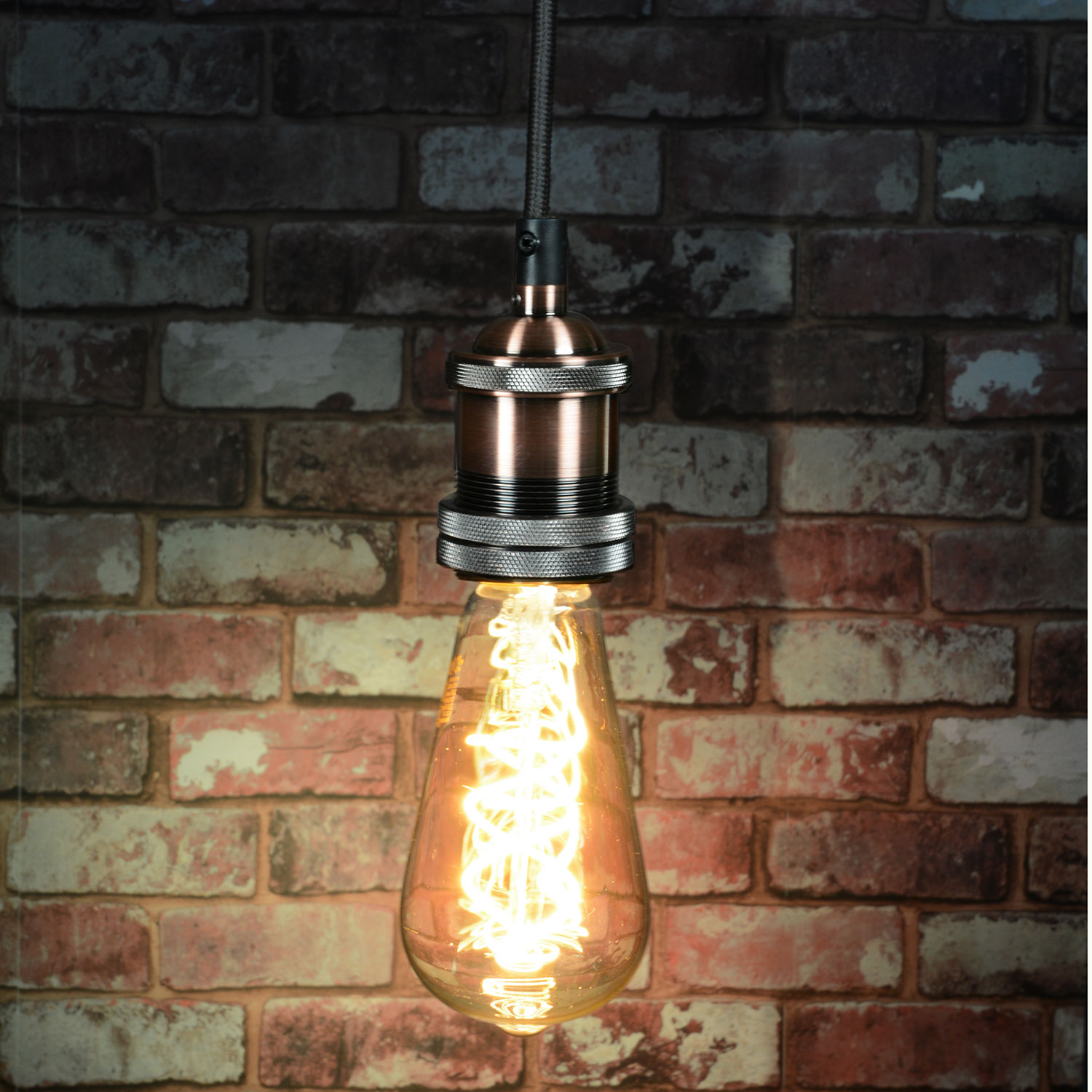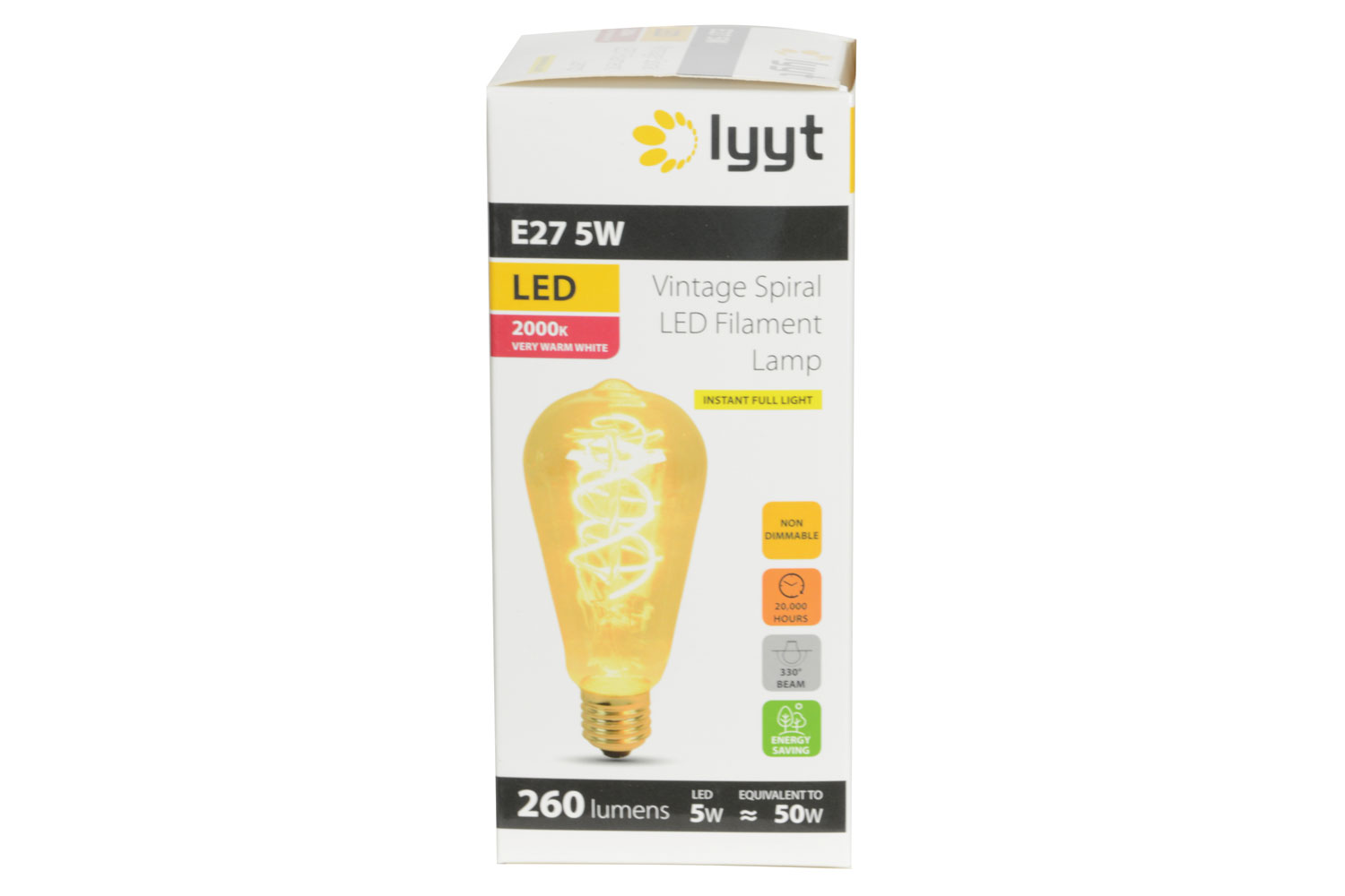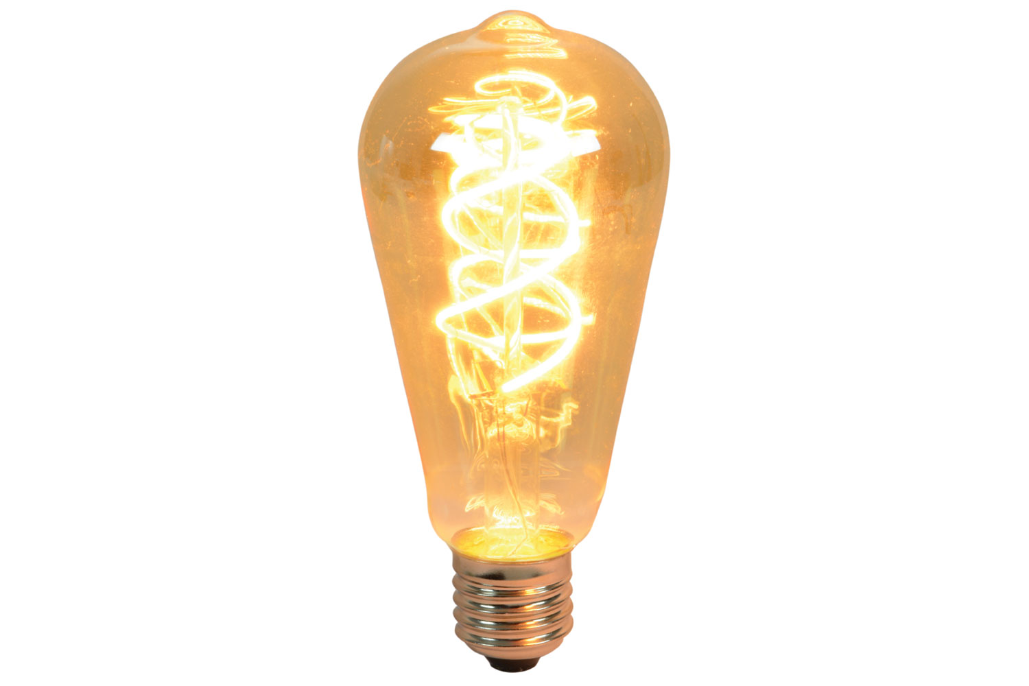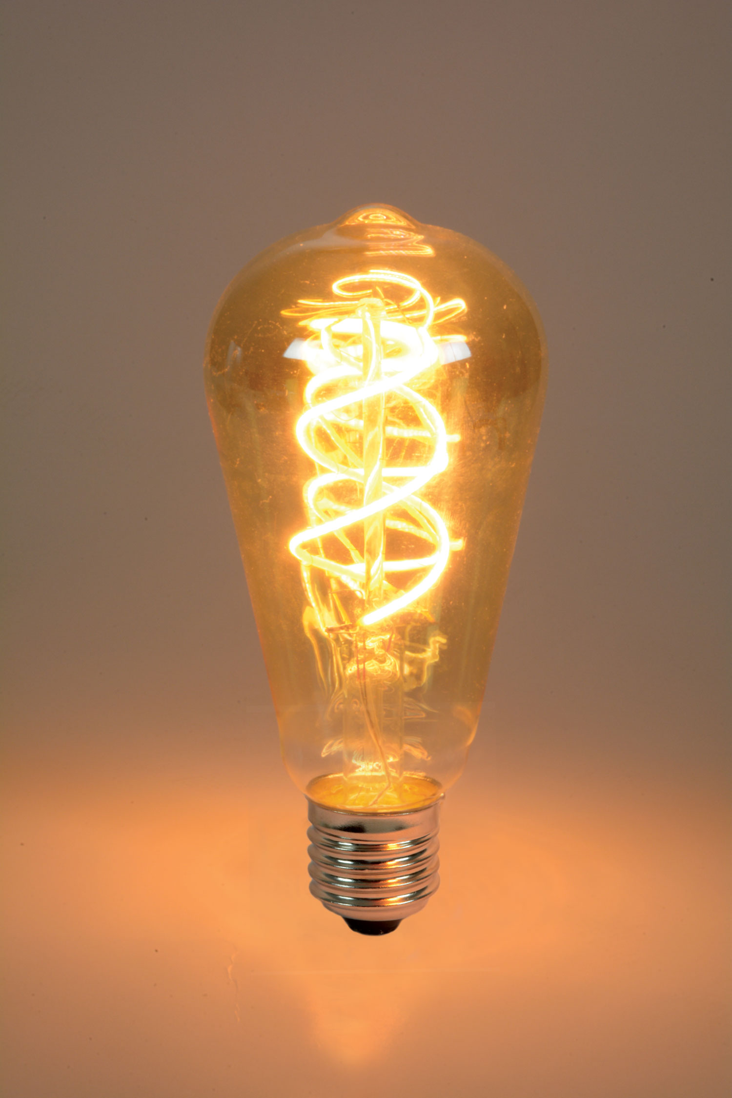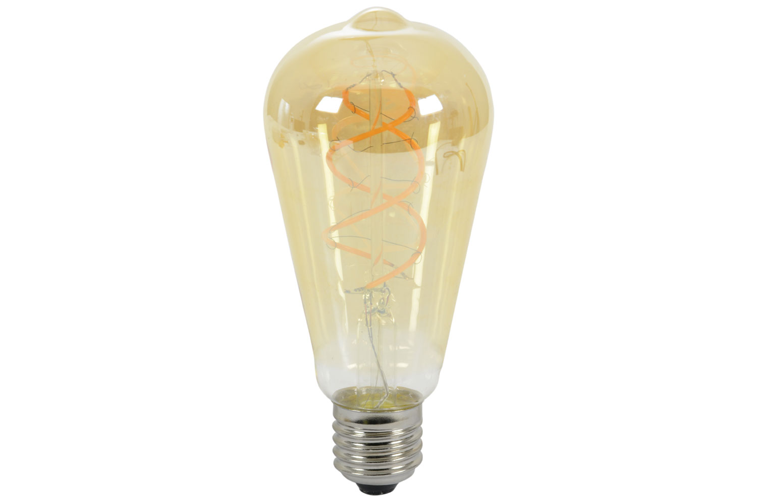 LED replacement ST64 Edison style lamp with decorative spiral filament. The warm white colour temperature combined with amber coated glass envelope invokes a retro ambiance. Energy efficient drivers deliver stable power and provide useful illumination for decorative yet functional lighting schemes.