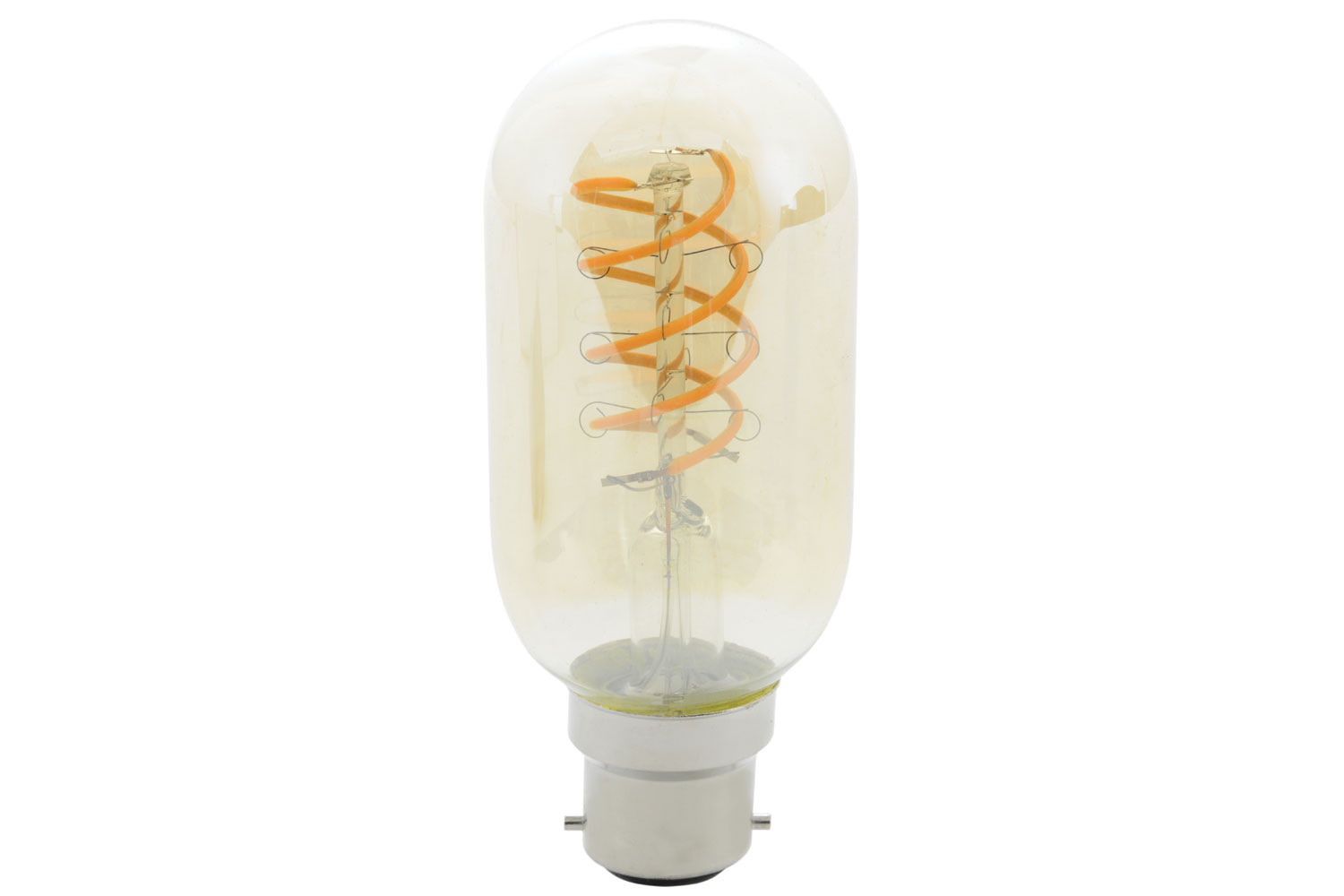 LED replacement T45 lamp with decorative spiral filament. The warm white colour temperature combined with amber coated glass envelope invokes a retro ambiance. Energy efficient drivers deliver stable power and provide useful illumination for decorative yet functional lighting schemes.