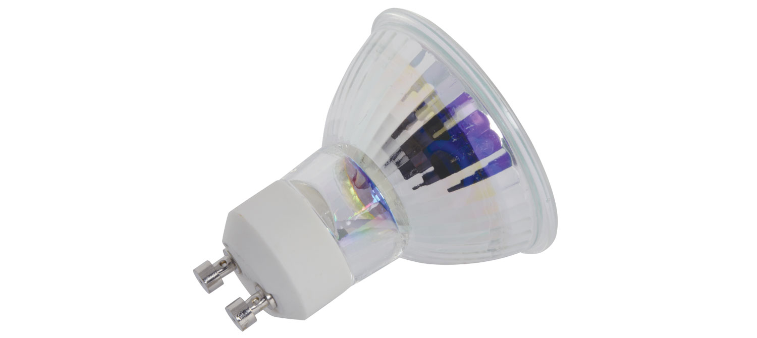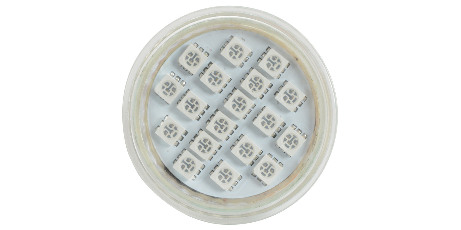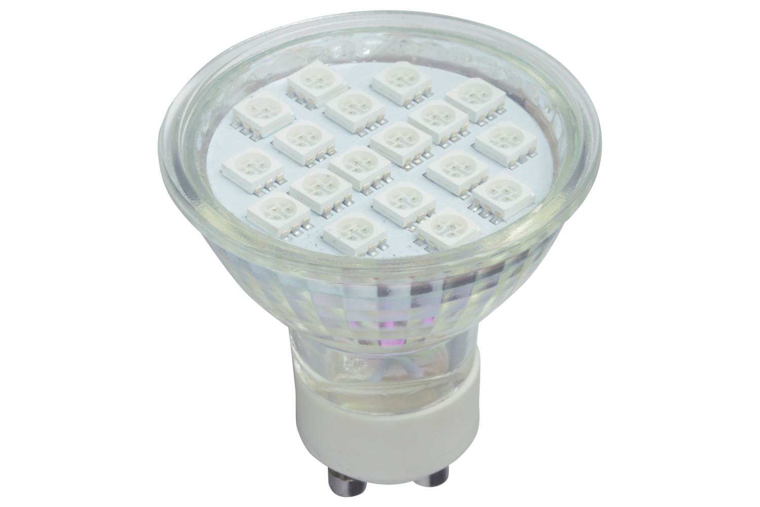 Mains voltage lamps with 18 x SMD LEDs in a GU10 housing, available in various colours.