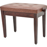 Traditional style piano benches with wooden frame and studded vinyl upholstered seat. Height is continuously adjustable by turning hand wheels at each side.