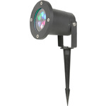 Seasonal, Halloween-themed outdoor light that projects spinning ghost, witch and pumpkin shapes onto a wall or other surface. Sturdy, weatherproof (IP44), and ground or wall mountable.