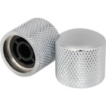 Set of 2 replacement control knobs for CAL62 style and other electric guitars. Plated knurled metal dome is formed over a plastic push-fit design body.