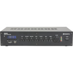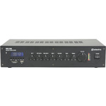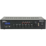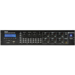 Rack-mountable 5-channel mixer amplifier for commercial installations. Media player with SD, USB, FM and Bluetooth. XLR, mic/line and RCA inputs. Powers 100V or 8 ohm mono speakers.